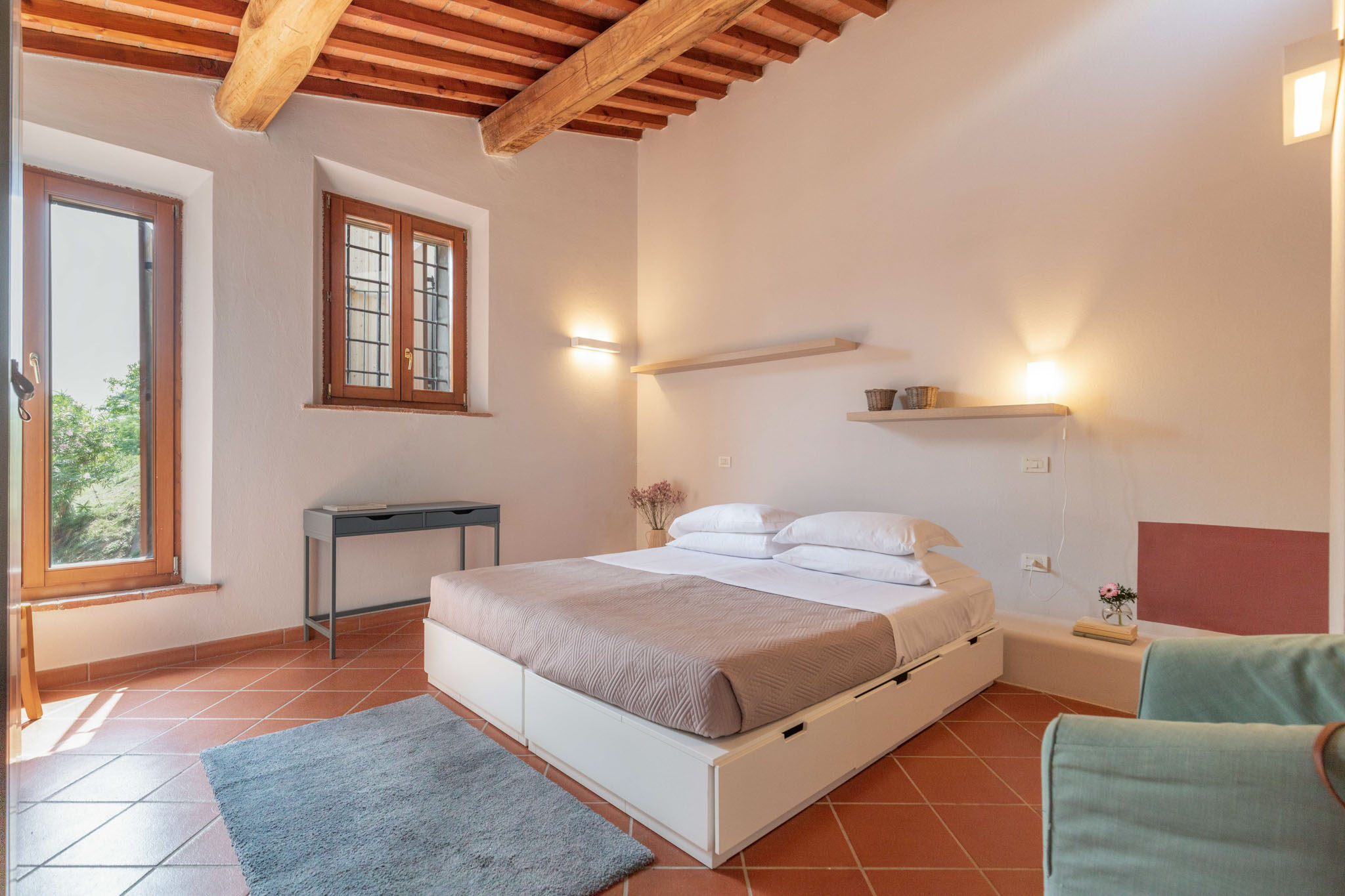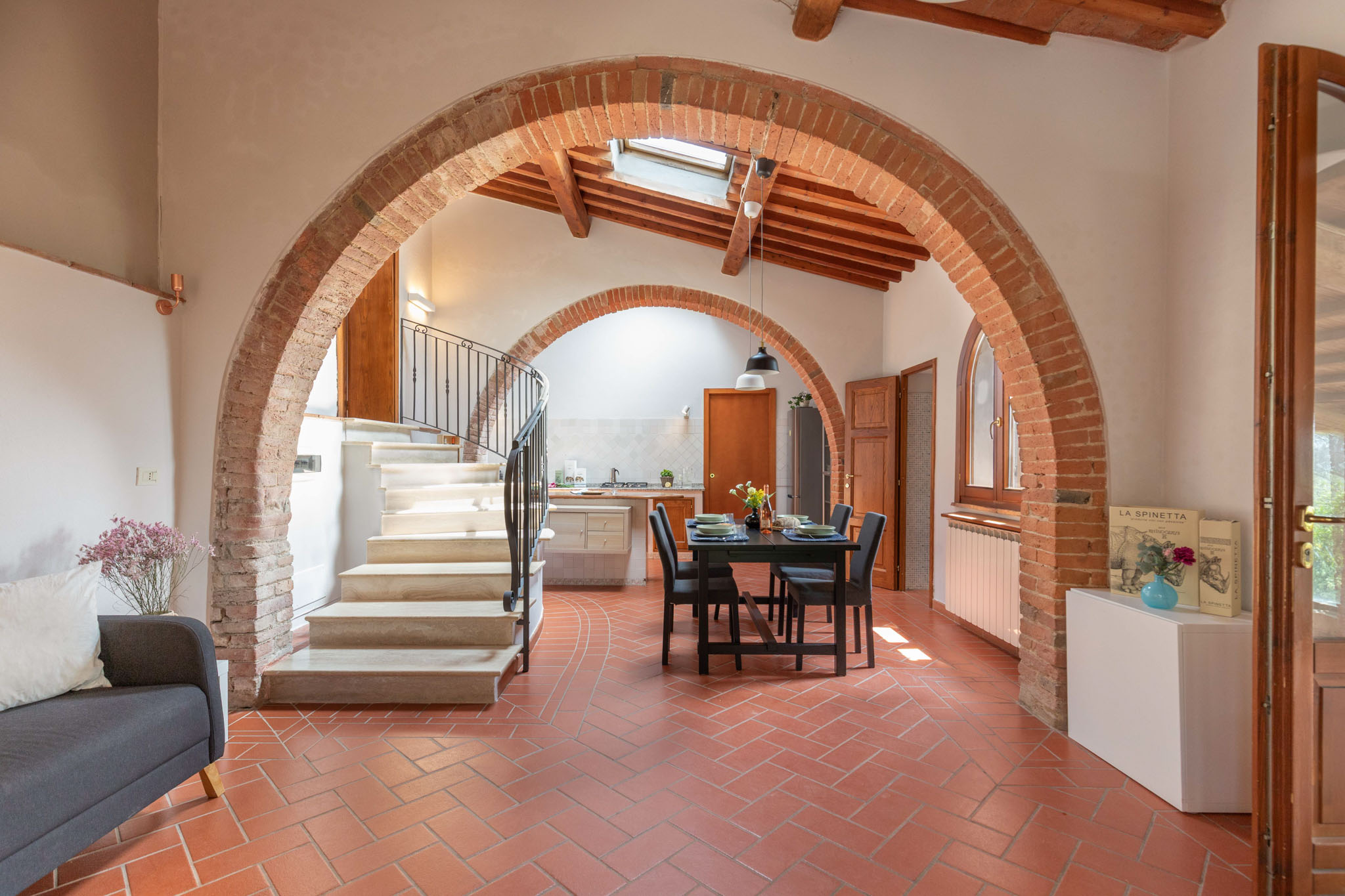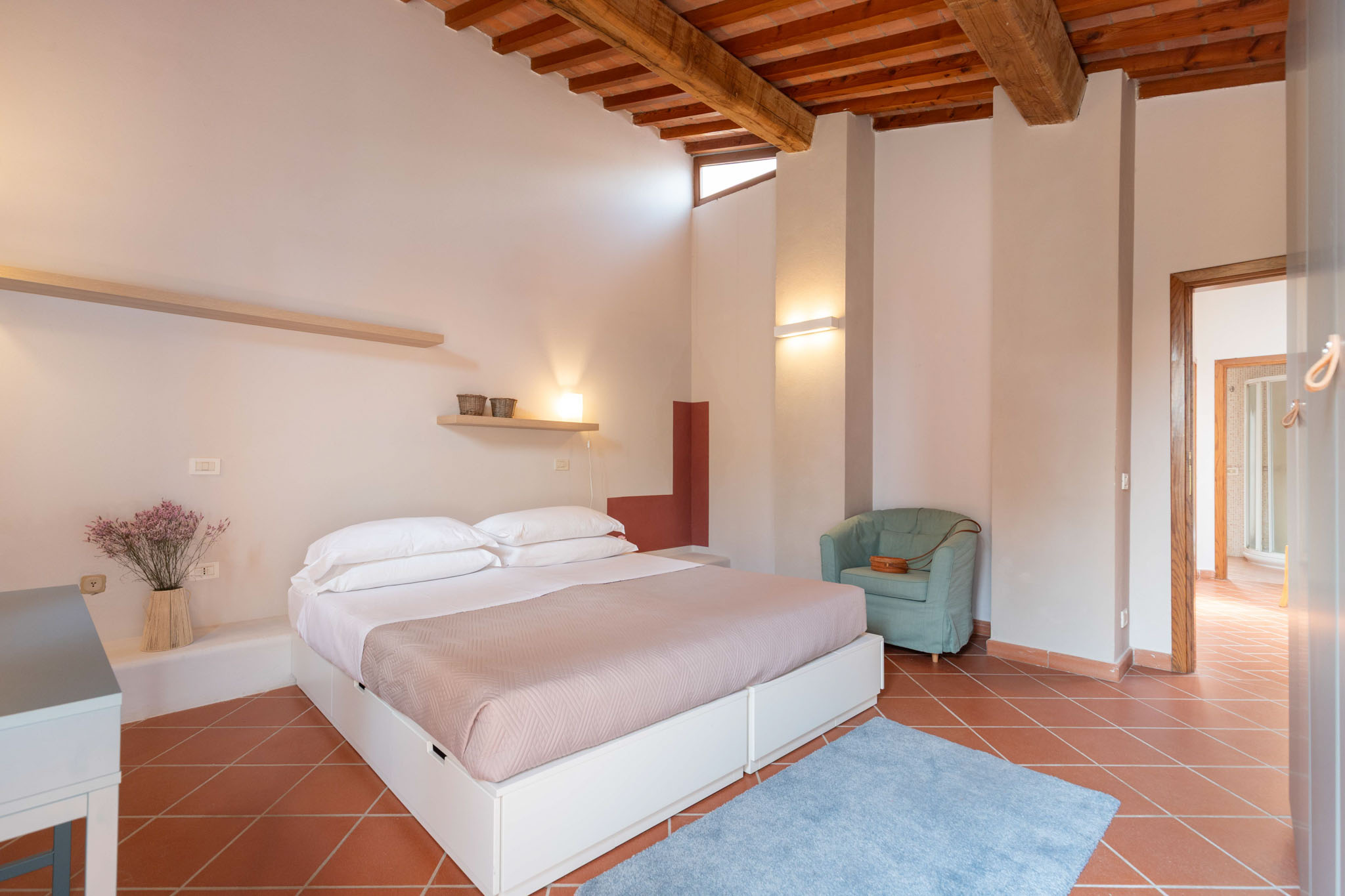 Spacious and full of light, Norma is designed to welcome families or groups of friends in an elegant and convivial setting. With three double bedrooms and three bathrooms, it offers comfort and privacy throughout. The finishes reflect Tuscan tradition, blending stone and wood with a refined, contemporary style. Overlooking the rolling hills, Norma is the perfect place to experience the countryside with style and authenticity.