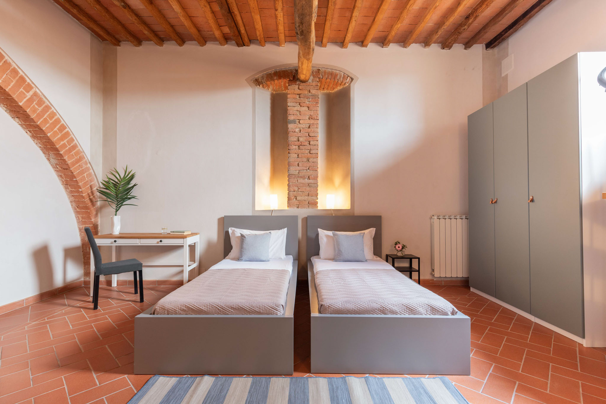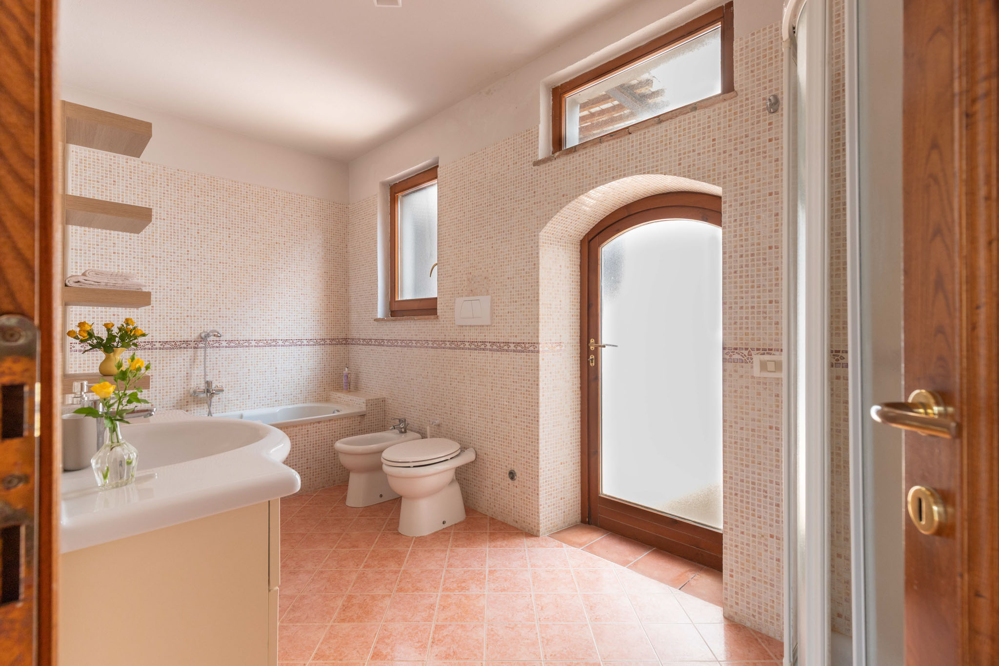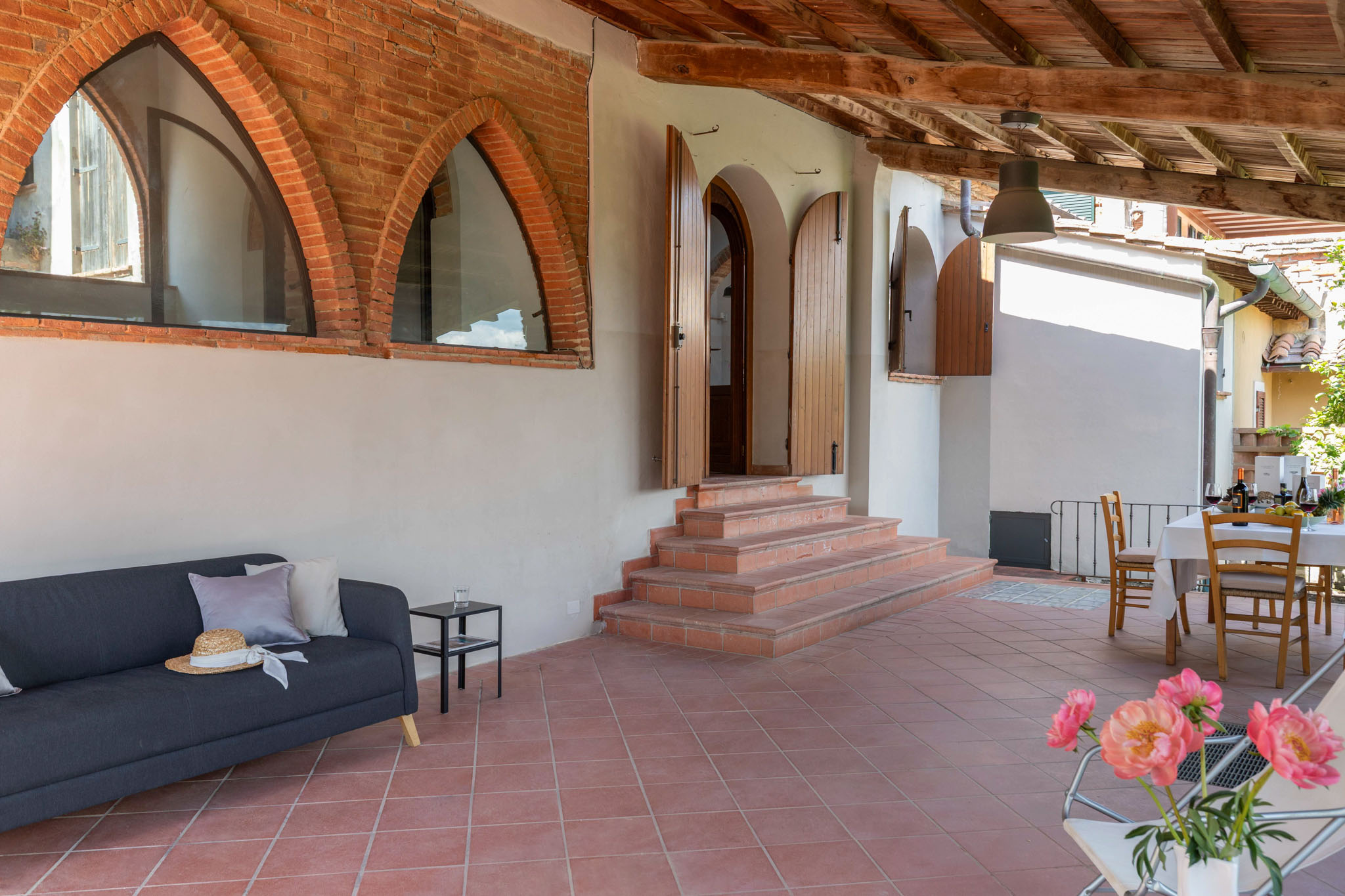 Spacious and full of light, Norma is designed to welcome families or groups of friends in an elegant and convivial setting. With three double bedrooms and three bathrooms, it offers comfort and privacy throughout. The finishes reflect Tuscan tradition, blending stone and wood with a refined, contemporary style. Overlooking the rolling hills, Norma is the perfect place to experience the countryside with style and authenticity.